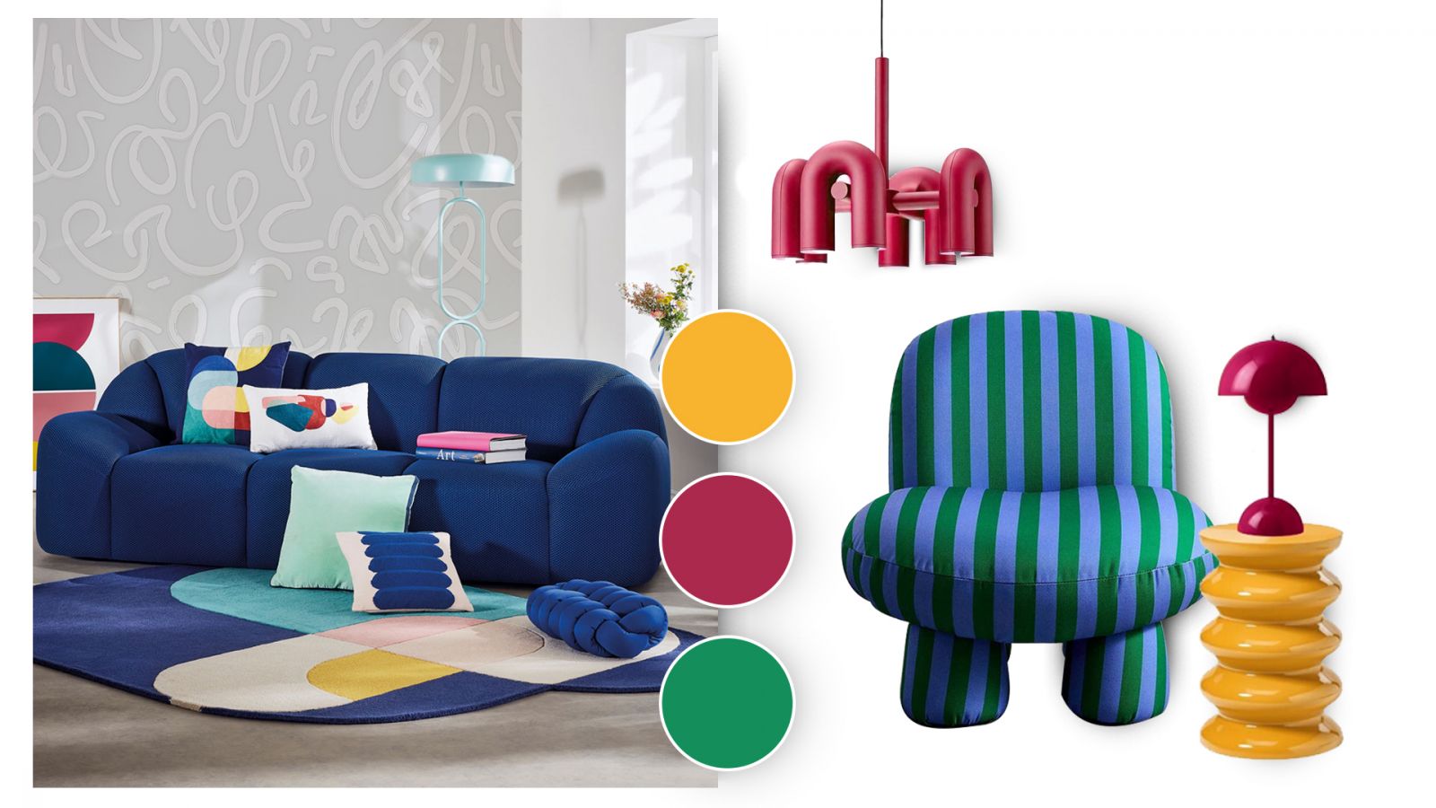 - Контраст и игра цвета. Зачастую китч выглядит кричаще за счёт обилия ярких контрастных сочетаний: кислотные оттенки, красные с зелёным, синий и жёлтый, оранжевый и фиолетовый, золото.