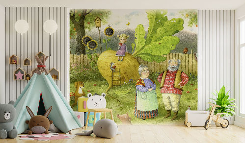 Все изображения из коллекции «В гостях у сказки» могут быть выполнены на любой текстуре фресок и фотообоев, в том числе и единым полотном (без стыков) до 50,0 х 3,18 м. Особенно рекомендуем бесшовные обои и фрески ECO, которые абсолютно безопасны и имеют «Экологический сертификат соответствия.